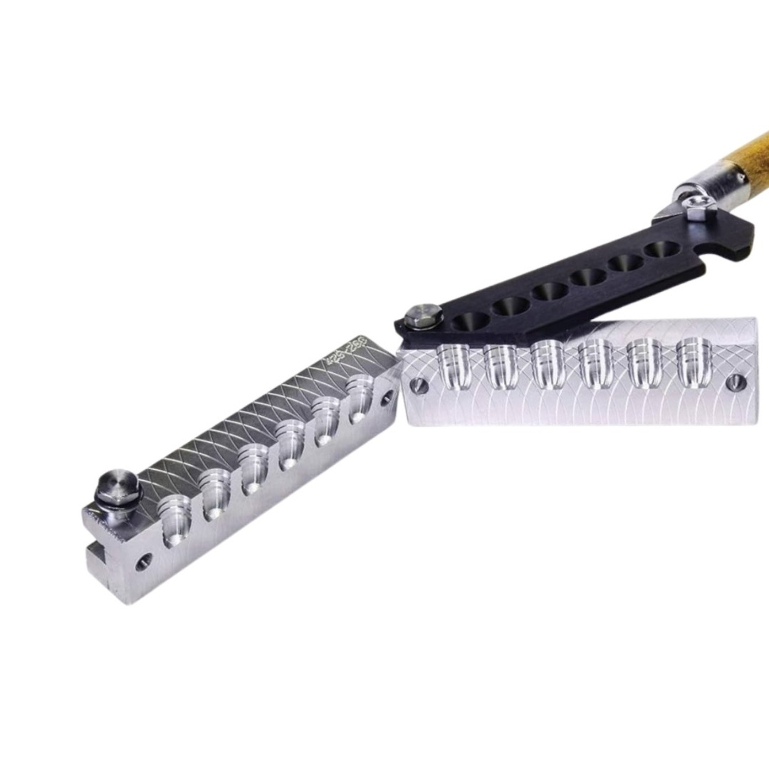 6 – Use um porrete de madeira para cortar o excesso de chumbo e destravar a coquilha, o uso de materiais duros pode amassar a barra de corte e consequentemente arranhar o molde, lembre-se que esse é um objeto com medidas precisar e que apesar da atividade, demanda cuidados especiais para que tenha uma longa vida útil.