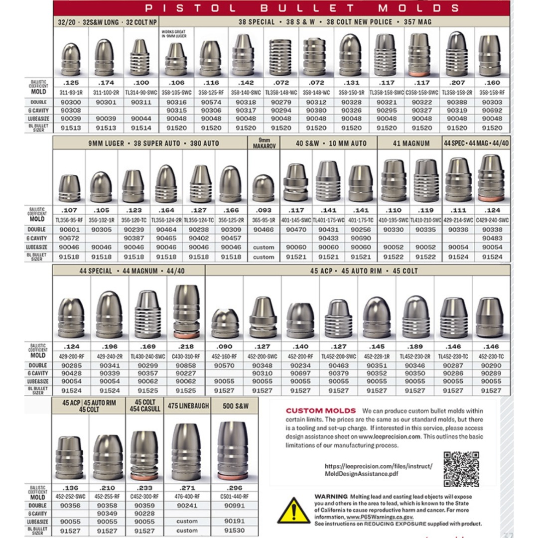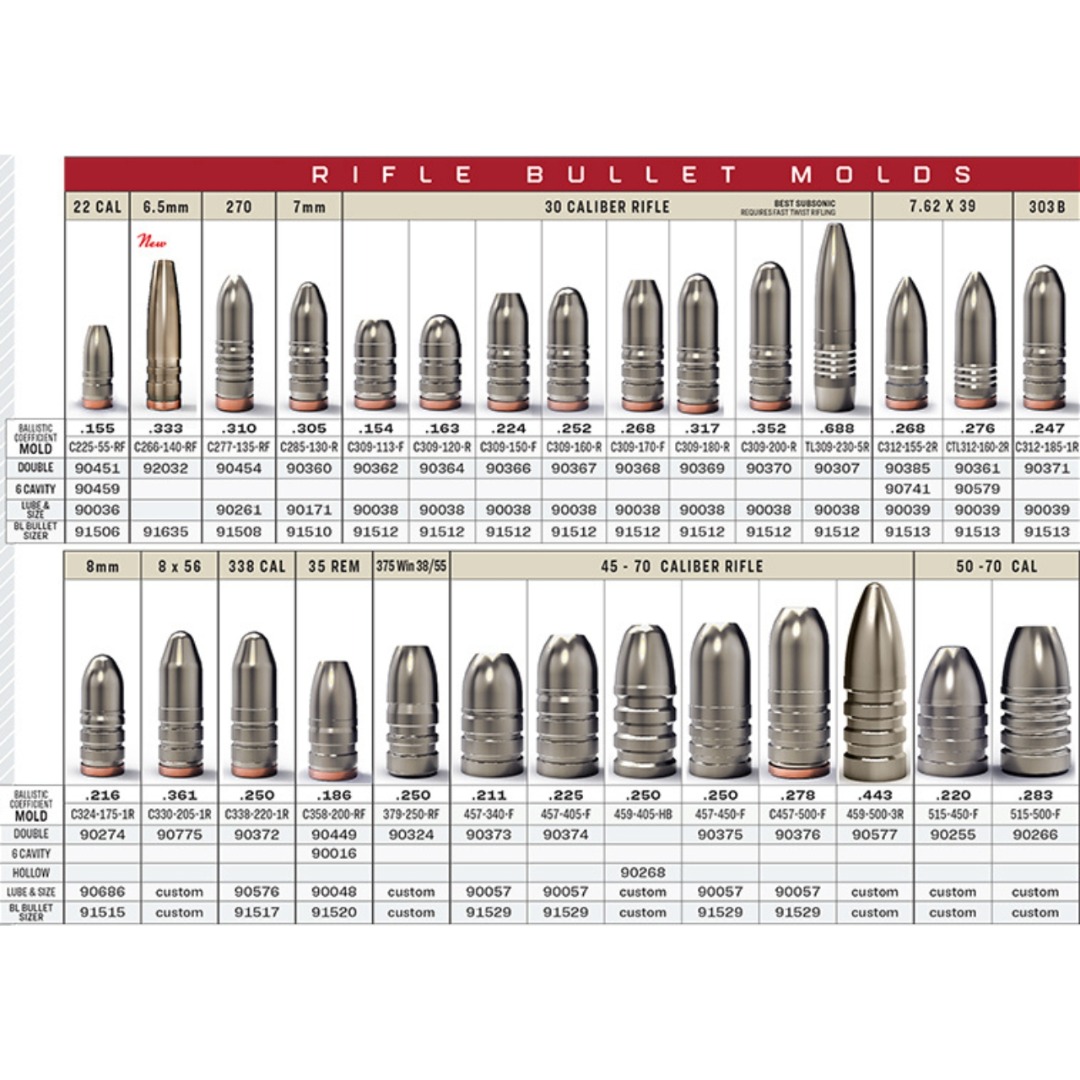 As coquilhas de duas cavidades da LEE PRECISION são produzidas em alumínio e usinadas em CNC de alta precisão, proporcionando precisão e uniformidade na produção de projéteis. Verifique as dimensões antes da compra.